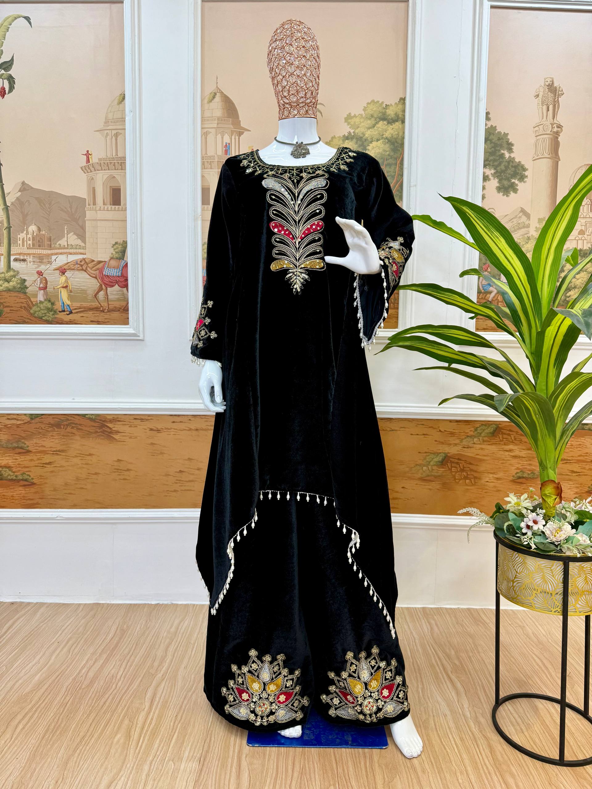 9000 VELVET✨KURTI & PLAZZO* *👗 EMBROIDERED KURTI ON VELVET FABRIC WITH EMBROIDERED PLAZZO