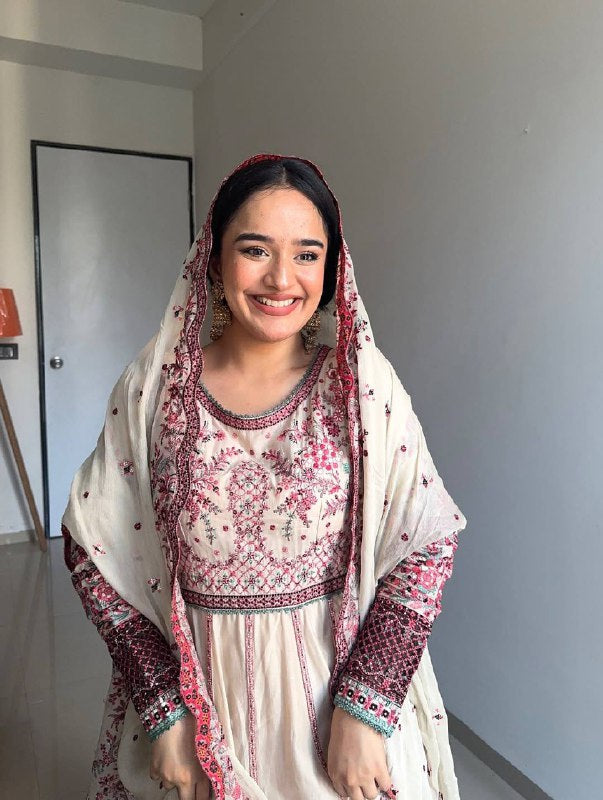 ANARKALI SET SUPERHIT TRENDING GOWN & DUPATTA SET WITH FULL EMBROIDERY WORK ON CHINON FABRIC