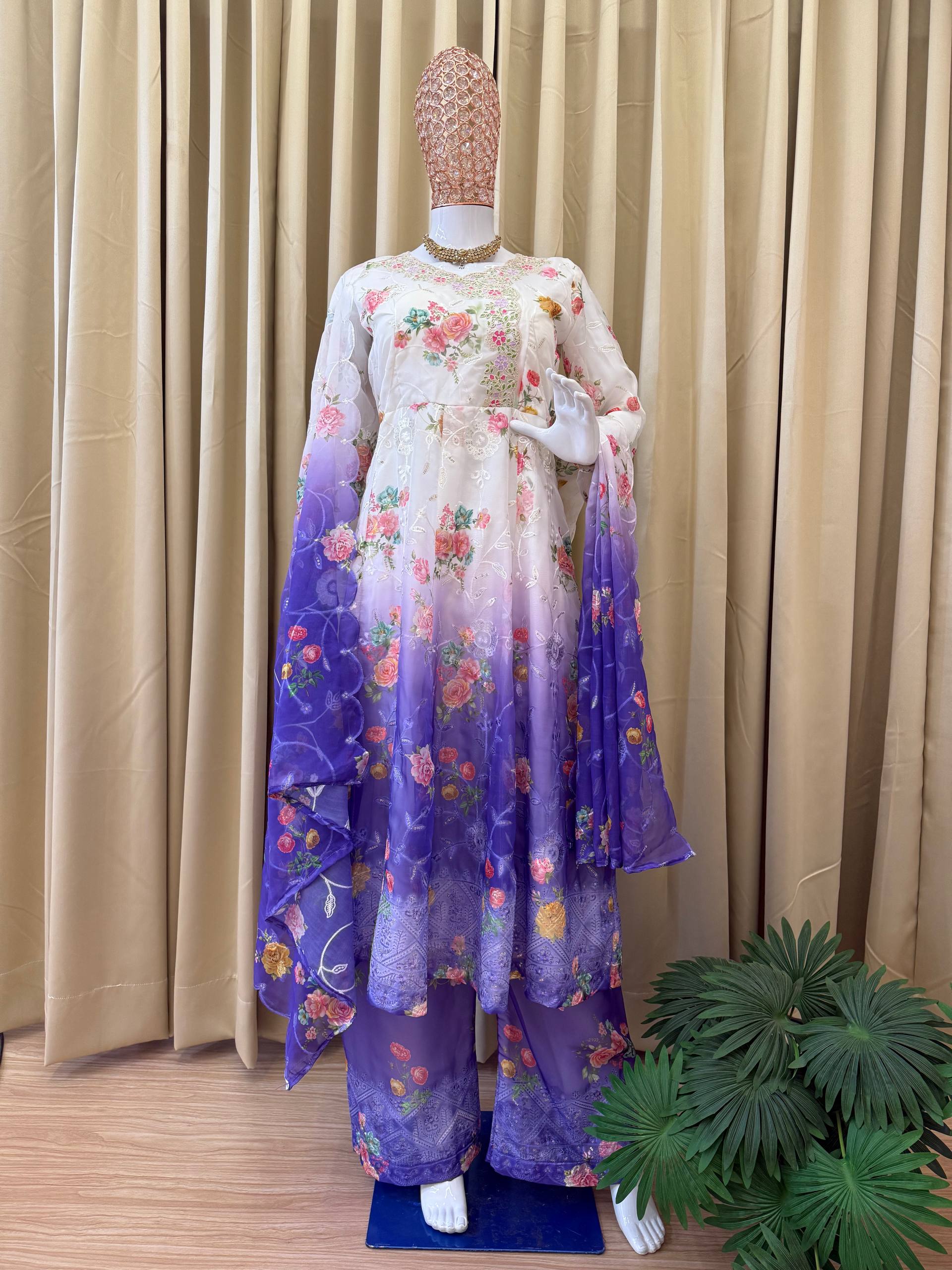 *Work:- FULL EMBROIDERY WORK AND PRINT / 4 mtr FLAIR*