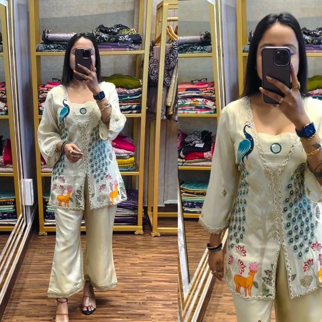 CO-ORD SET WITH FULLY EMBROIDERED KOTI ON CHIMMAR FABRIC WITH STITCH PLAZZO