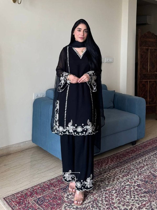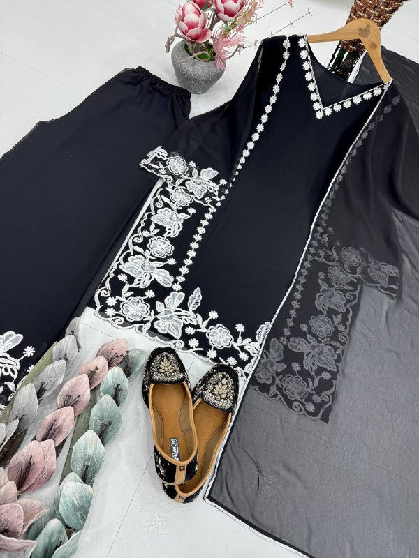 DESIGNER PARTY WEAR EMBROIDERY CHINE STITCHE TOP, PLAZZO WITH DUPATTA single available wholesale