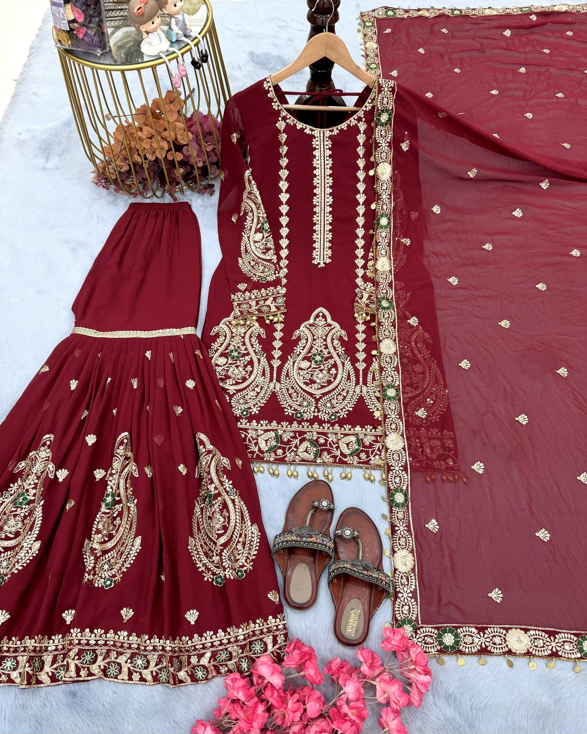 Đěsigner Party Wear Look Heavy Faux Georgette Top Plazzo & Dupatta Set