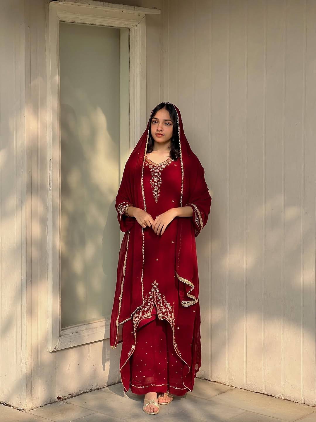 ĐĚSIGNER PARTY WEAR TOP AND PLAZZO. WITH FANCY DUPPATA AND EMBROIDERY WORK