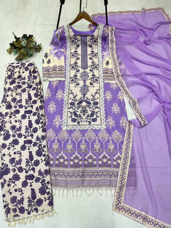 DESIGNER WEAR PRINTED KURTA PANT SUIT IN THREE PIECE WITH REAL MIRROR WORK