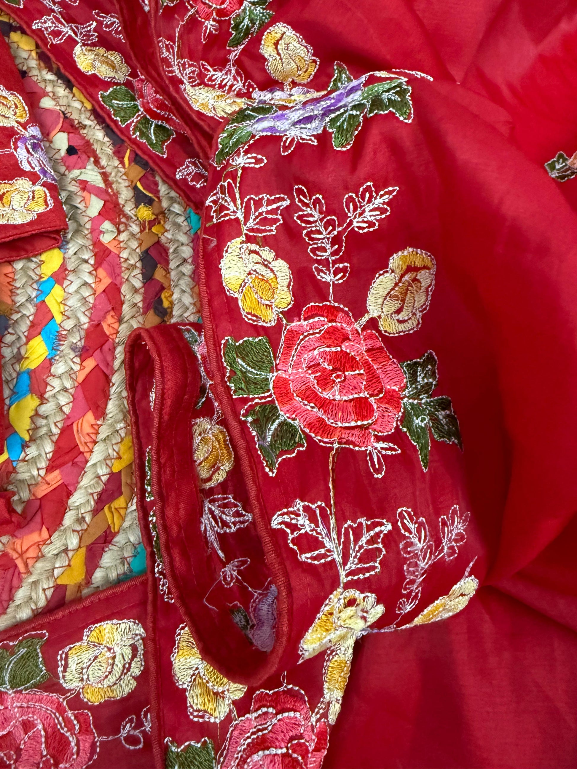 These sarees feature soft Tussar Silk fabric with the self tone to tone thread work embroidery which is inspired by our Parsi thread work Embroidery with multicolour florals work the saree the borders have an abstract look which enhances the beauty of these sarees bonding with a tone to tone matching blouse embroidery blouse