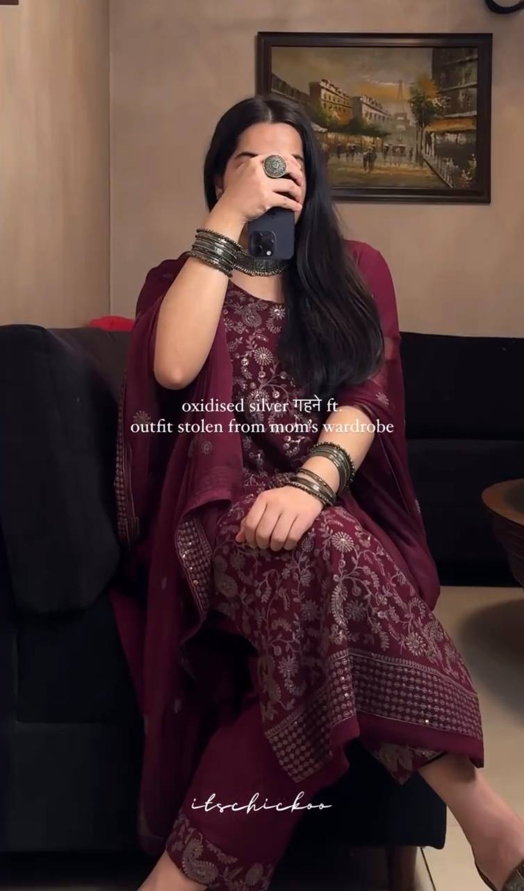FANCY FAUX GEORGETTE SEQUENCE EMBROIDERED WORK TOP AND PENT WITH DUPATTA