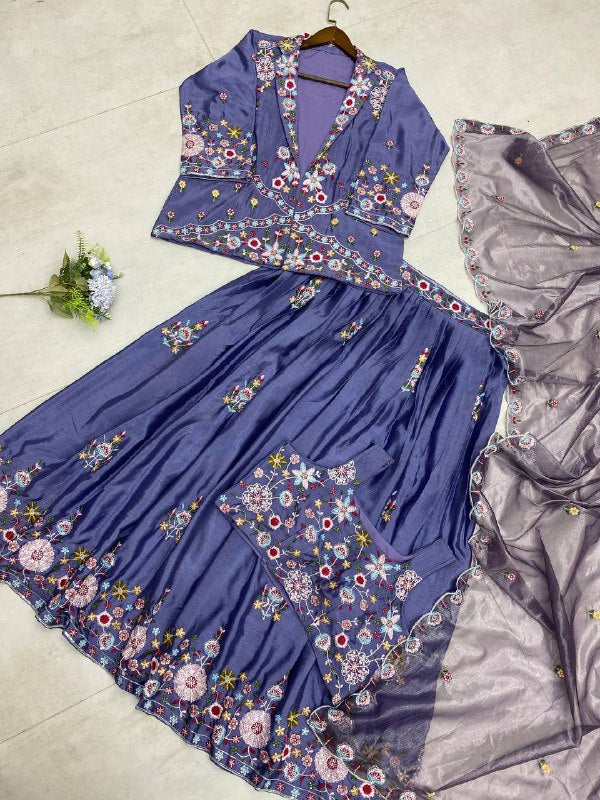 #*LEHENGA* CHINON WITH SEQUANCE EMBROIDERY WORK AND 3meter FLAIR