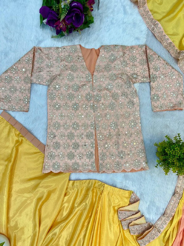 INDO-WESTERN DRAPE SAREE….* 🚀 *🥻WE ARE LAUNCHING NEW SUPERHIT TRENDING INDO-WESTERN READY TO WEAR SAREE WITH FULLY EMBROIDERED KOTI ON CHINON FABRIC WITH STITCH BLOUSE