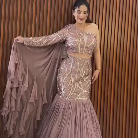 LEHENGA DETAIL : FAUX GEORGETTE WITH SEQUENCE WORK AND RUFFLE