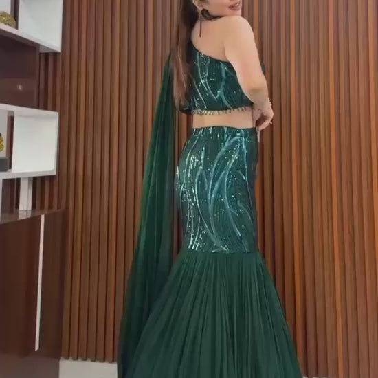 _BOUTIQUE STYLE NEW FANCY PARTY WEAR FAUX GEORGETTE SEQUENCE WORK AND RUFFLE LEHENGA AND BLOUSE WITH ATTACHED DUPATTA🚀_