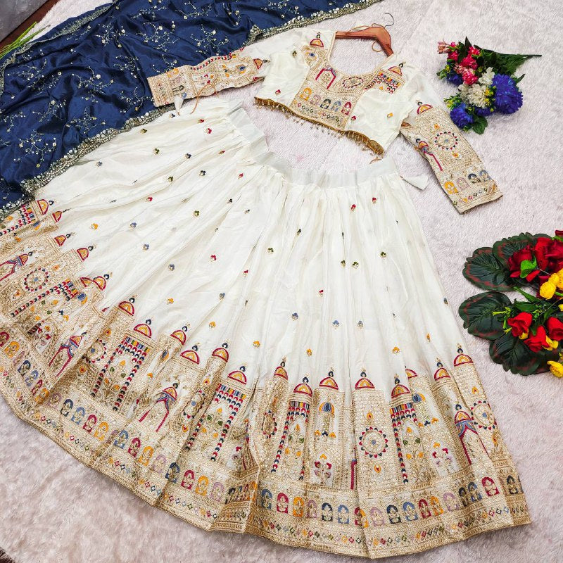 *Choli Deatils:- Heavy Pure Chinon Silk With Premium Multi Thread work with Sequins and Corading Dori Embroidery Work*