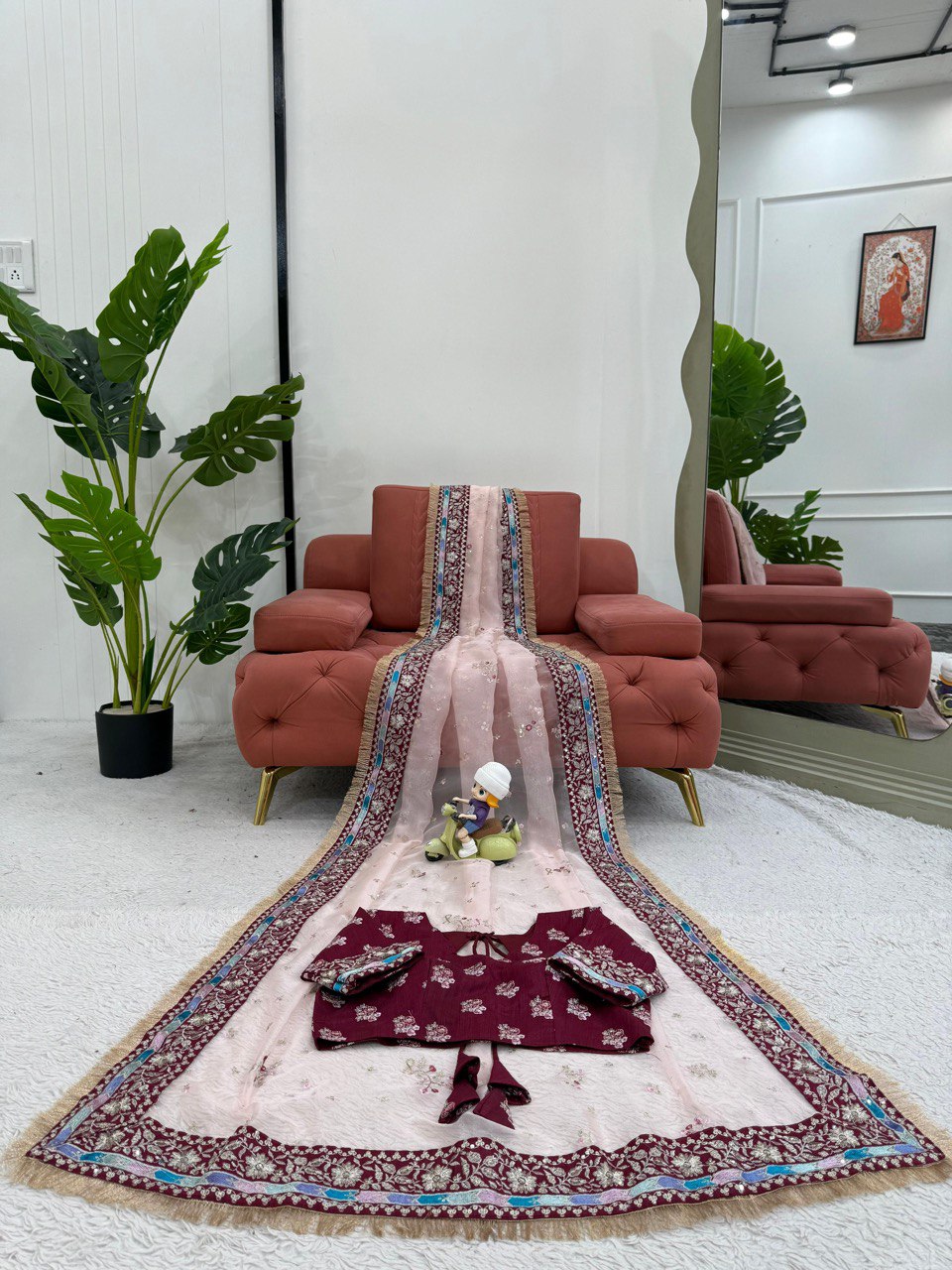 Looking some one for this same colour beautiful Designer Saree on Havy Organza Silk Febric with Thred & Sequnce work and Blouse on Mono Benglori Silk Febric With Thred & Sequnce work