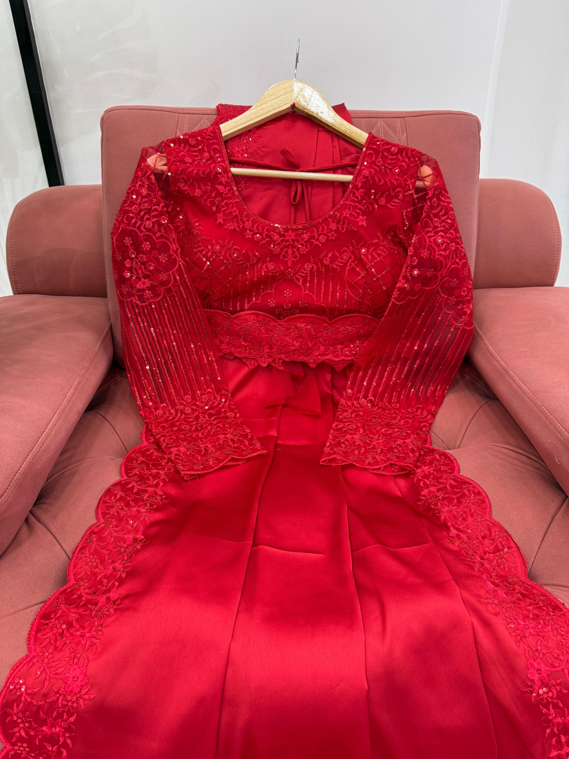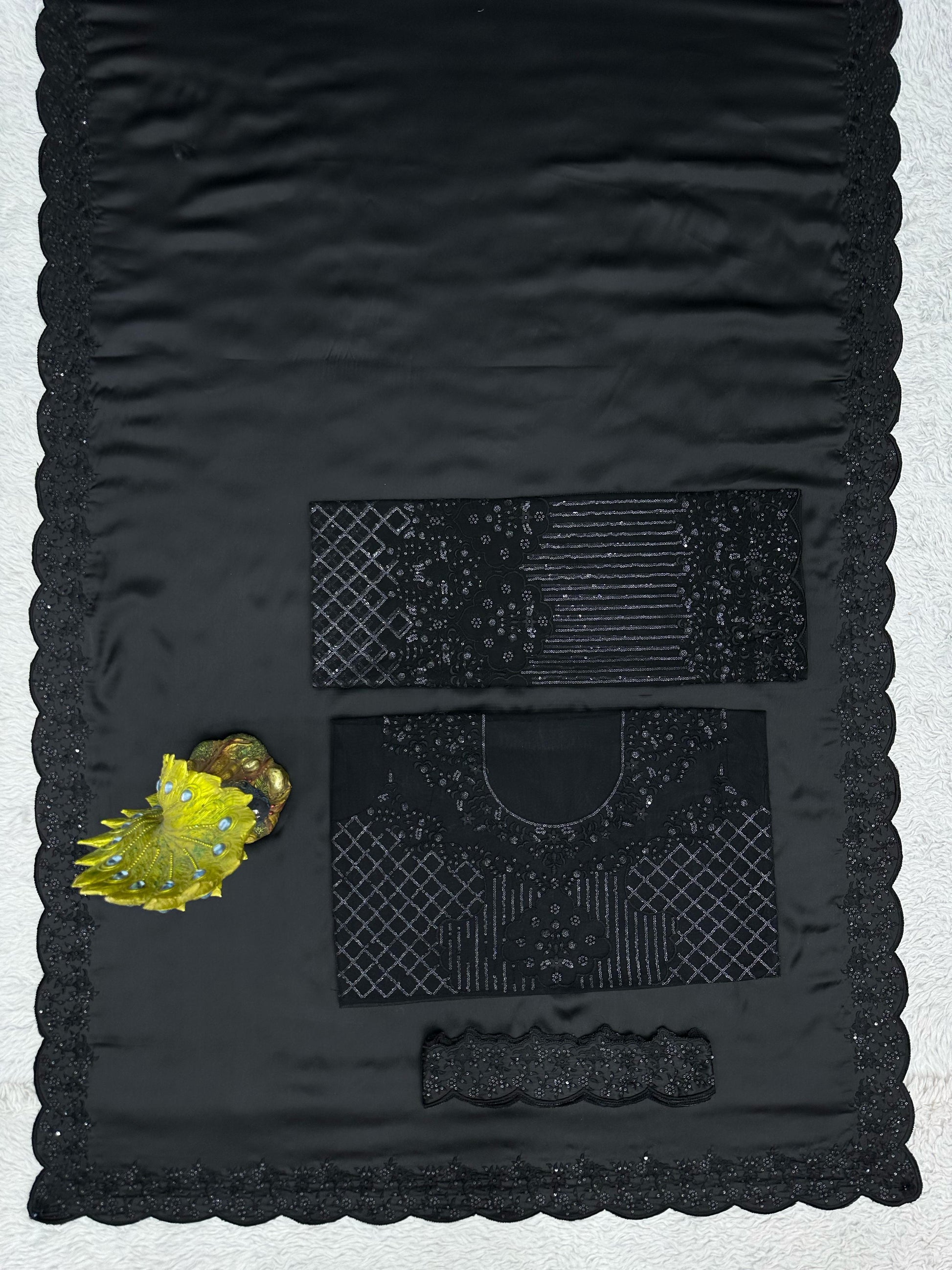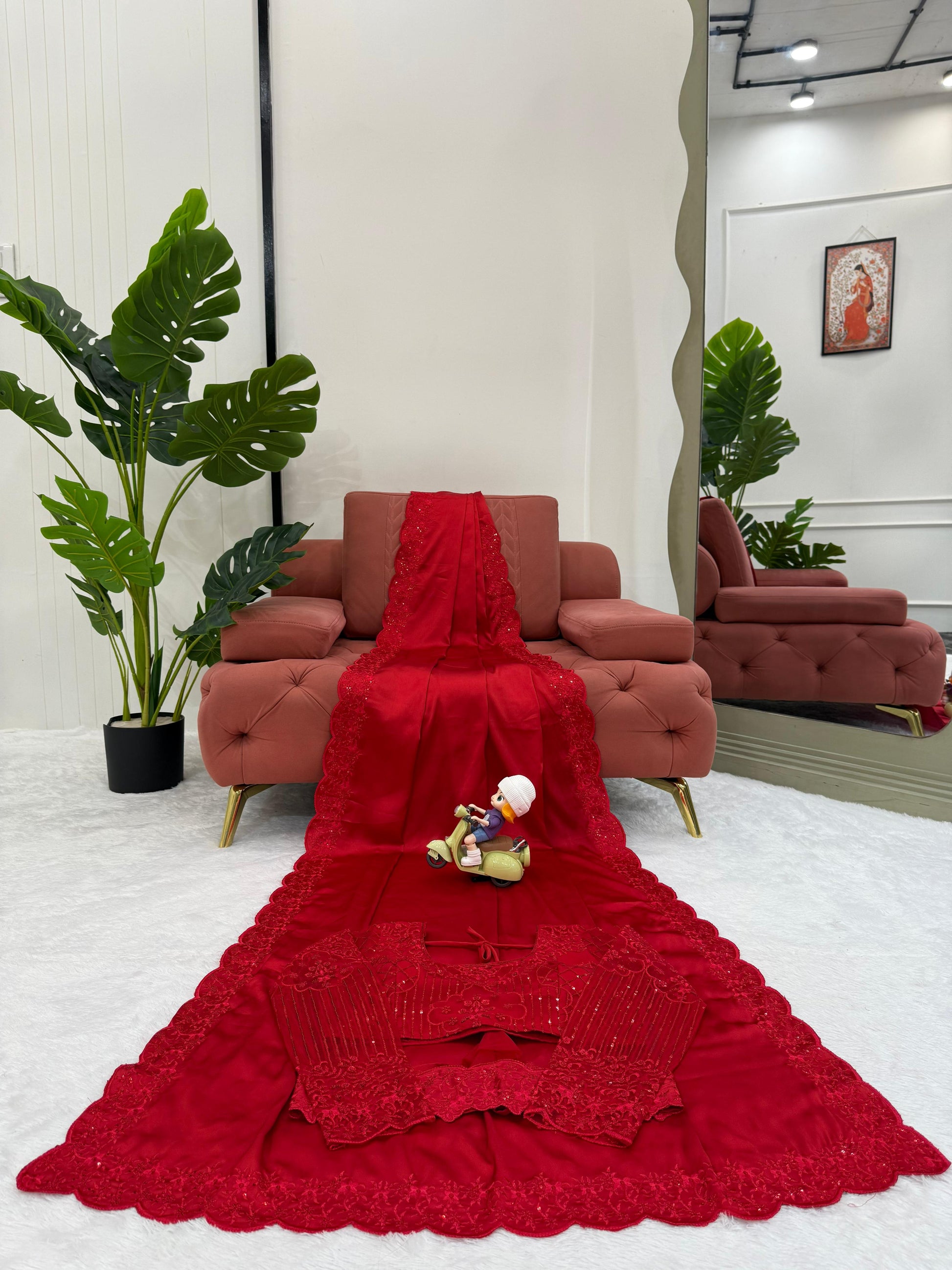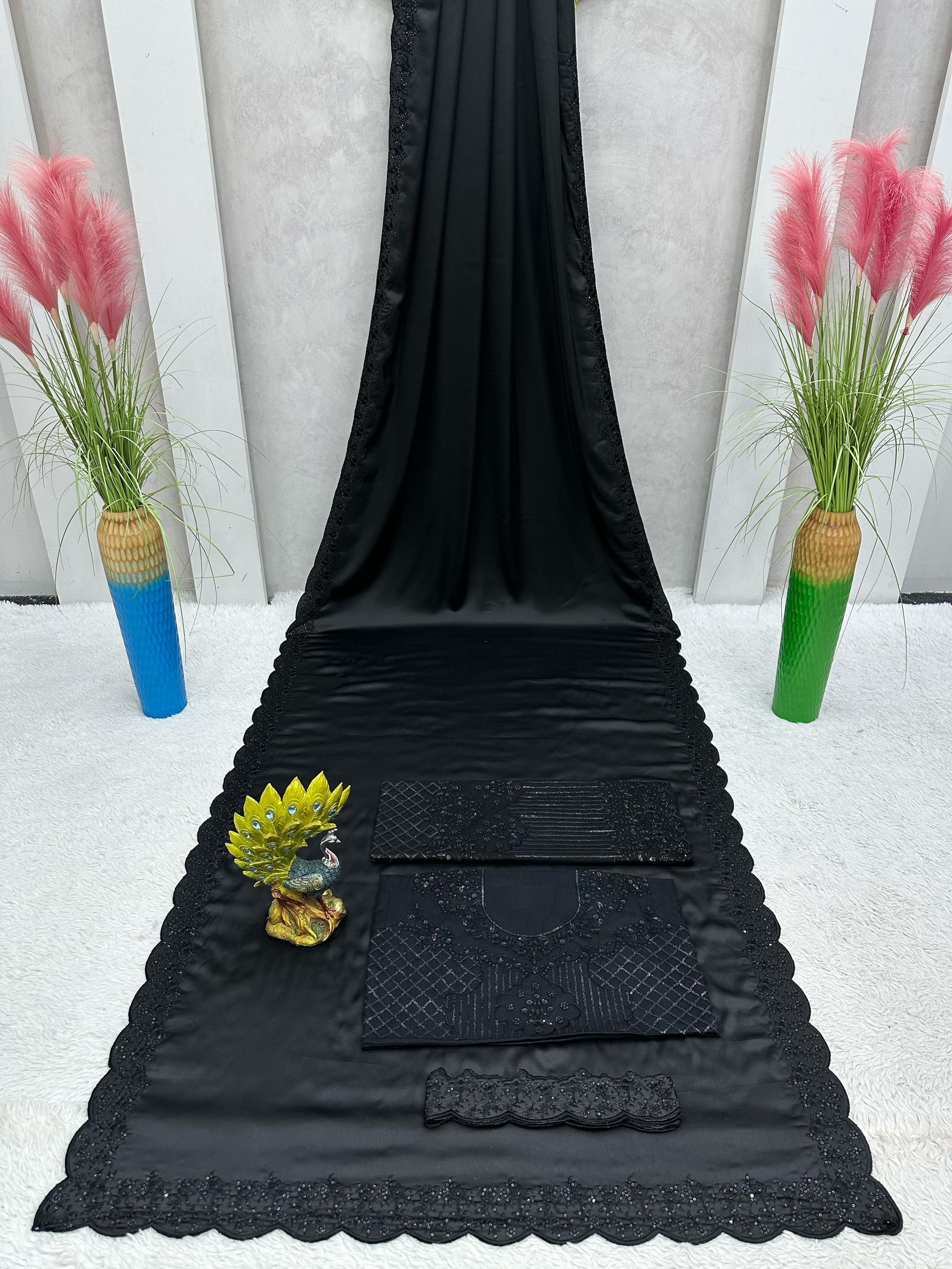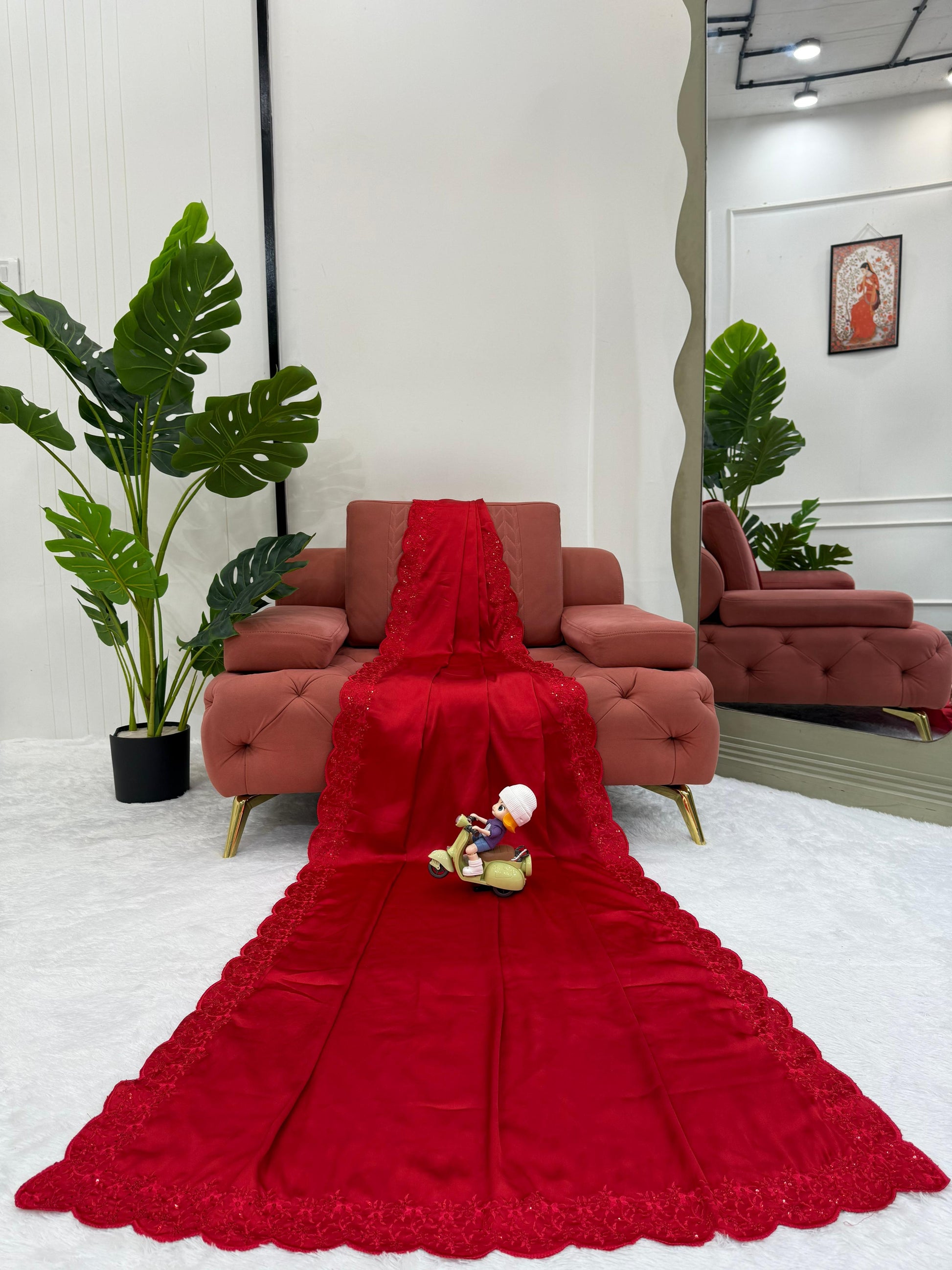Looking some one for this same colour beautiful Designer Saree on Satin Silk Febric with Thred & Sequnce work Blouse on Soft net Febric with Thred with Sequnce work and Belt on also Satin silk febric