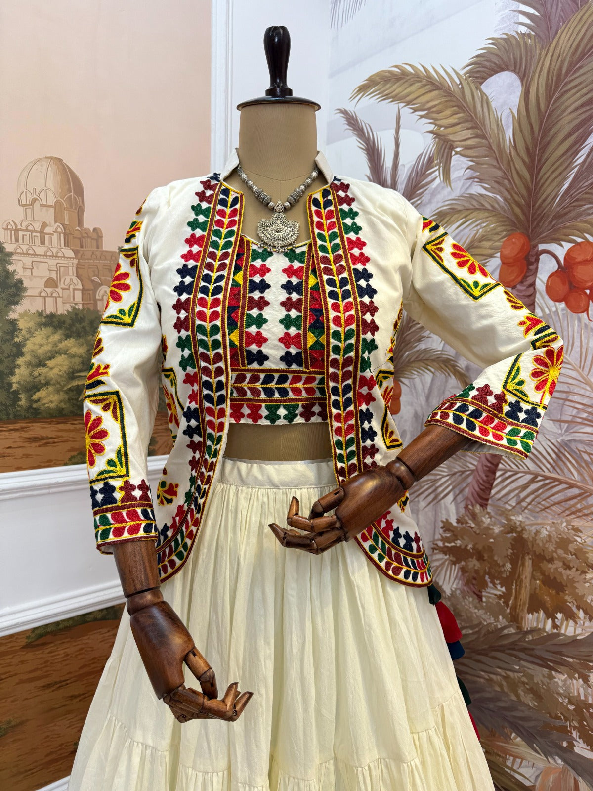 navrati LEHENGA, BLOUSE & KOTI SET π THIS SET IS COMING WITH PURE COTTON FABRIC EMBROIDERY WORK