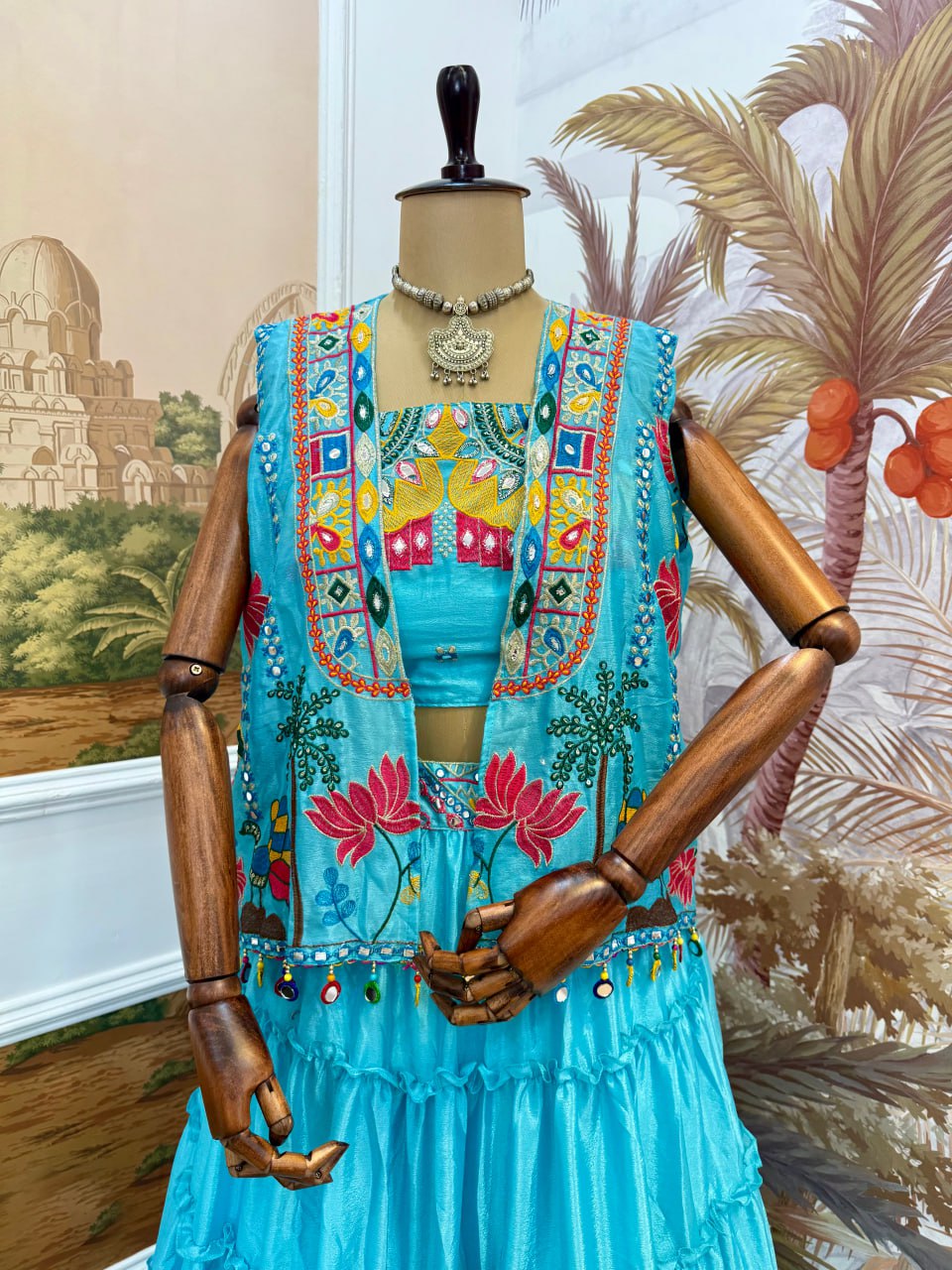*Work :- FULL HEAVY EMBROIDERY WORK WITH MIRROR LACE*