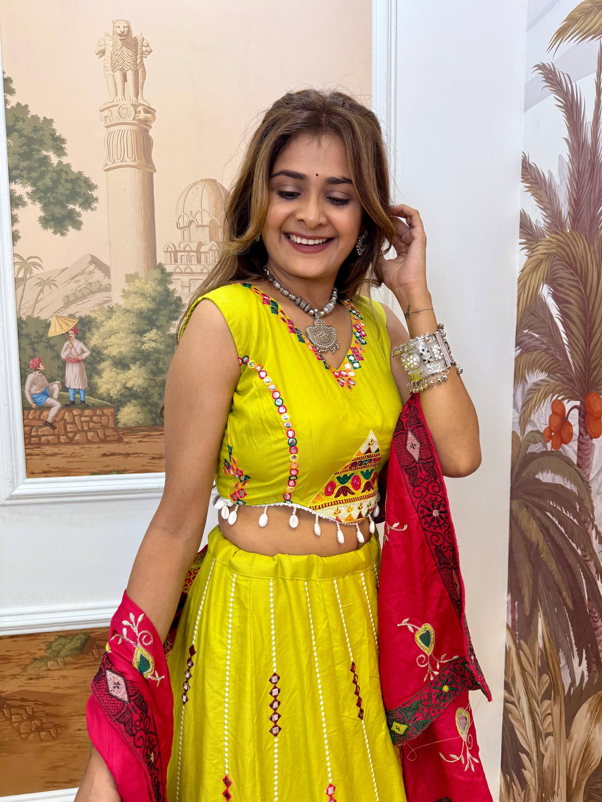 navrati PURE RAYON FABRIC FULL HEAVY EMBROIDERY WORK AND LACE BORDER single available wholesale