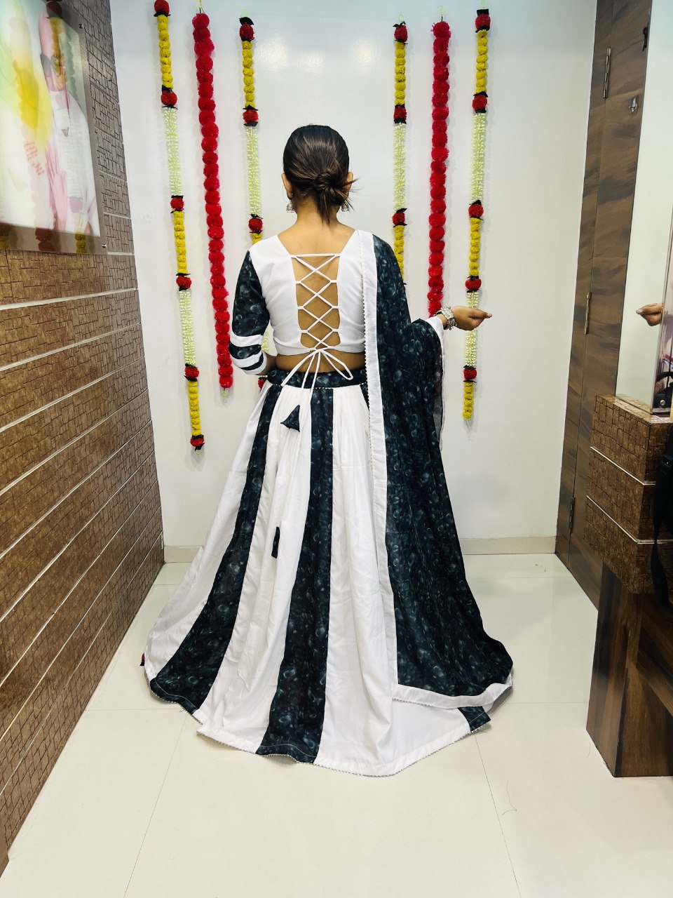 LEHENGA WORK: PRINTED WITH MIRROR LACE WORK