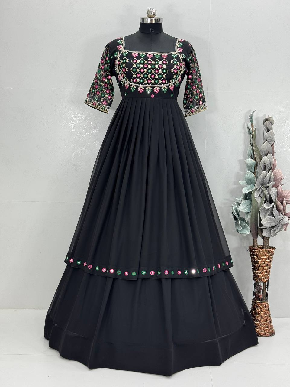 NAVRATRI COLLECTION EMBROIDERY SEQUENCE WORK TOP WITH LEHENGAS single available wholesale
