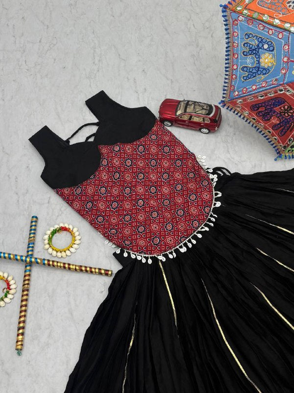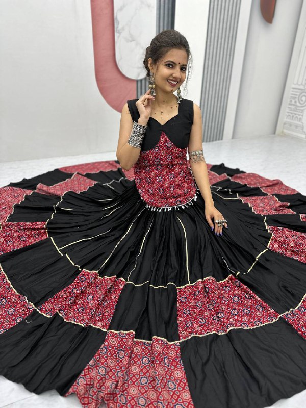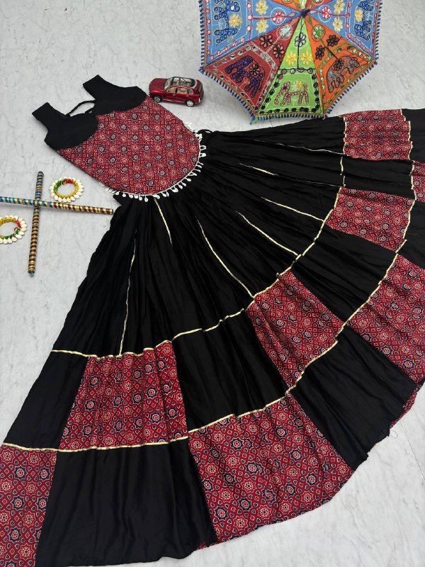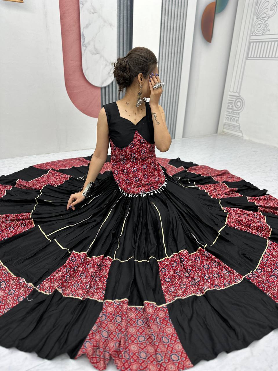 Navratri Special Ajarakh Print Lehenga Choli 6 Meter Heavy Flair Lehenga Choli