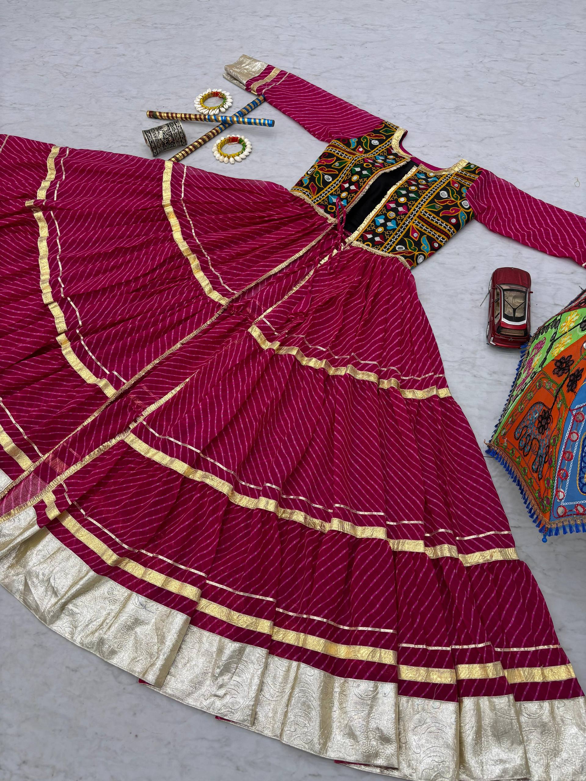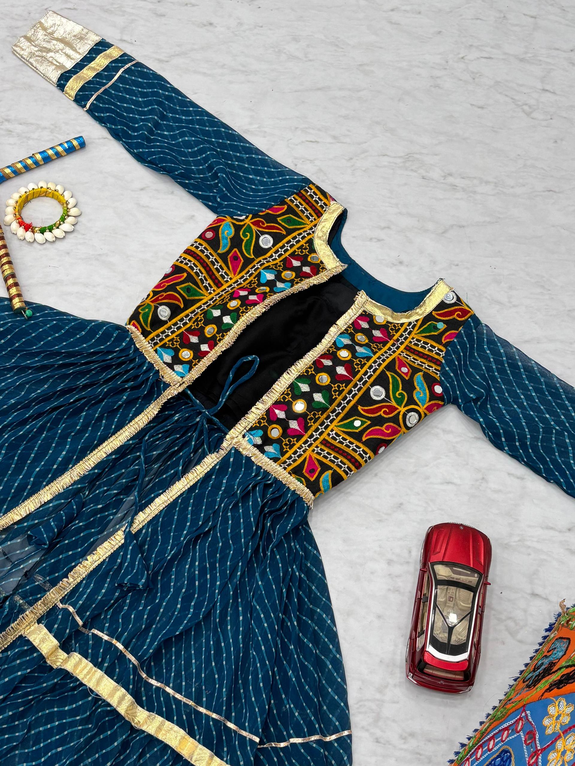 *Work:-* Gamathi with Real Mirror Work and Motedo print with Lumpi lace Border,Ribbion Work