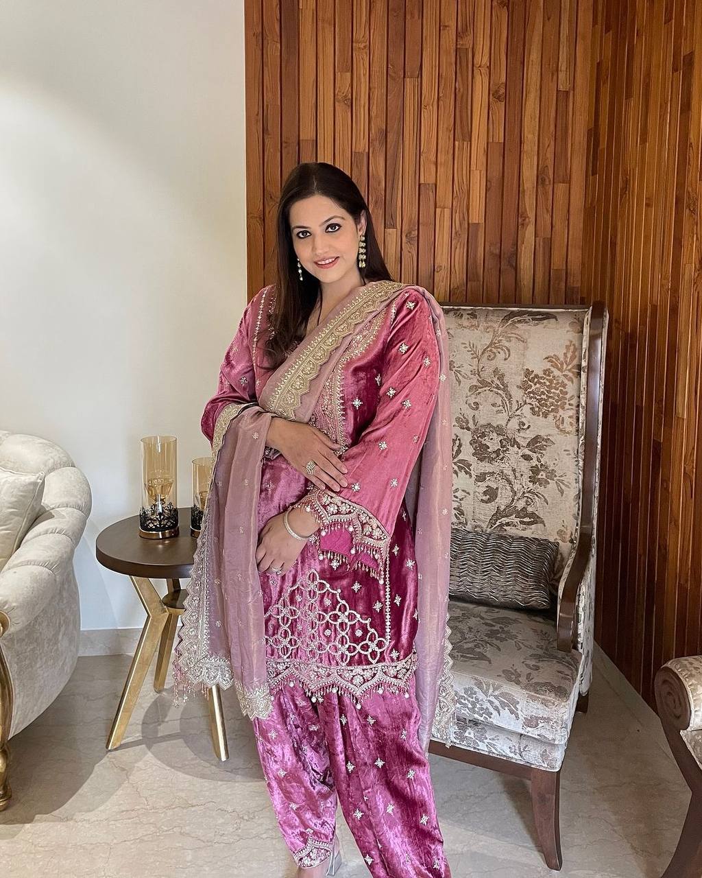 *Top Fabric* :Pure Heavy Viscose Velvet With *Heavy Embroidery Sequence Work neck moti work* With Full Sleeves