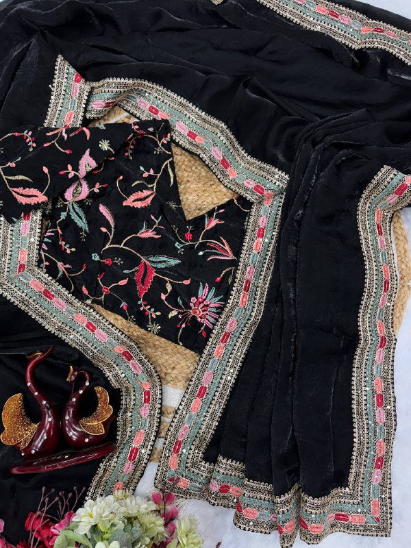 * BLOUSE*- Beautiful multicolour thread and sequins embroidery work in space silk fabric (1.20 MTR)(UNSTITCH)