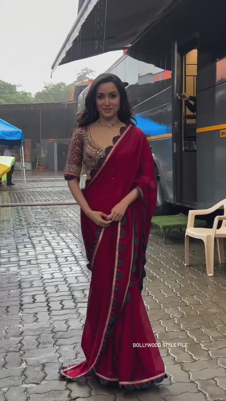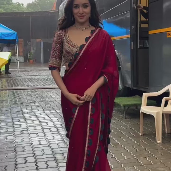 shraddha kapoor bollywood vCUT WORK BORDER SAREE WITH PEARL MOTI WORK ON BODY & FULL EMBROIDERY WORK UNSTITCHED BLOOD INSPIRED