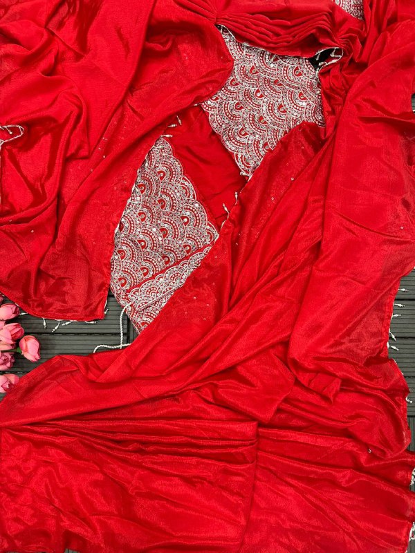 Super Trending Embroidery cording work ready to wear saree with full koti