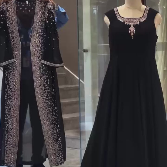 SUPERHIT TRENDING FESTIVE COLLECTION GOWN, KOTI & DUPATTA SET WITH EMBROIDERY WORK & CRYSTAL STONE WORK