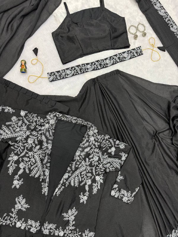 SUPERHIT TRENDING INDO-WESTERN READY TO WEAR SAREE WITH FULLY EMBROIDERED KOTI ON CHINON