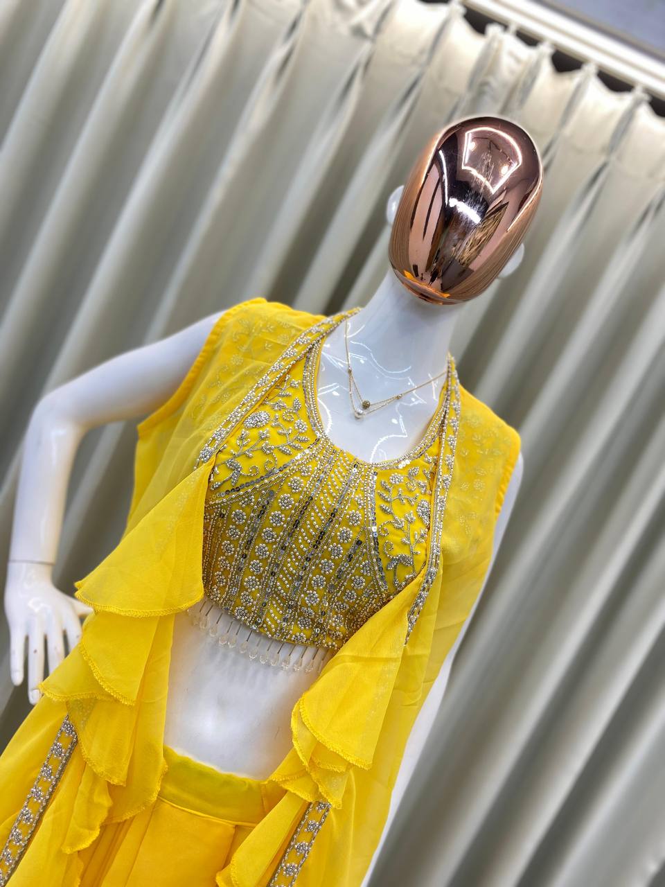 # KOTI : GEORGETTE WITH EMBROIDERY SEQUANCE BEADS WORK AND RUFFLES ( FREE SIZE)