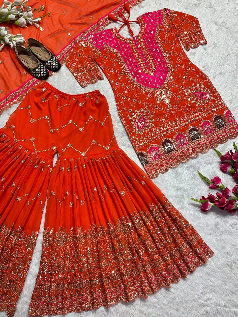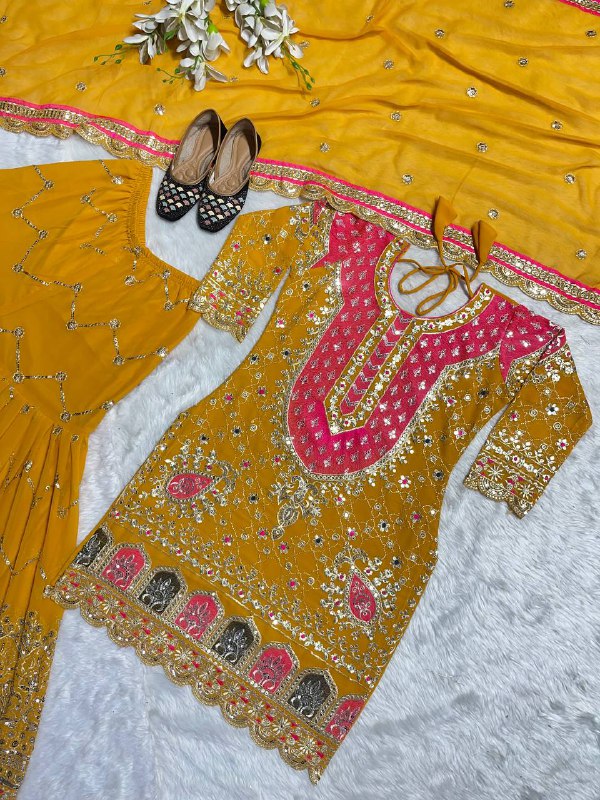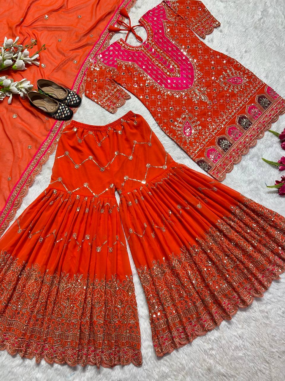 *Plazzo Fabrics* :Heavy Faux Georgette With *5mm Embroidery Sequence* Fully Flair